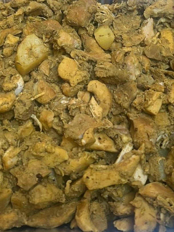 Chicken Curry with Potato & brown rice, salad, fruit & Milk.